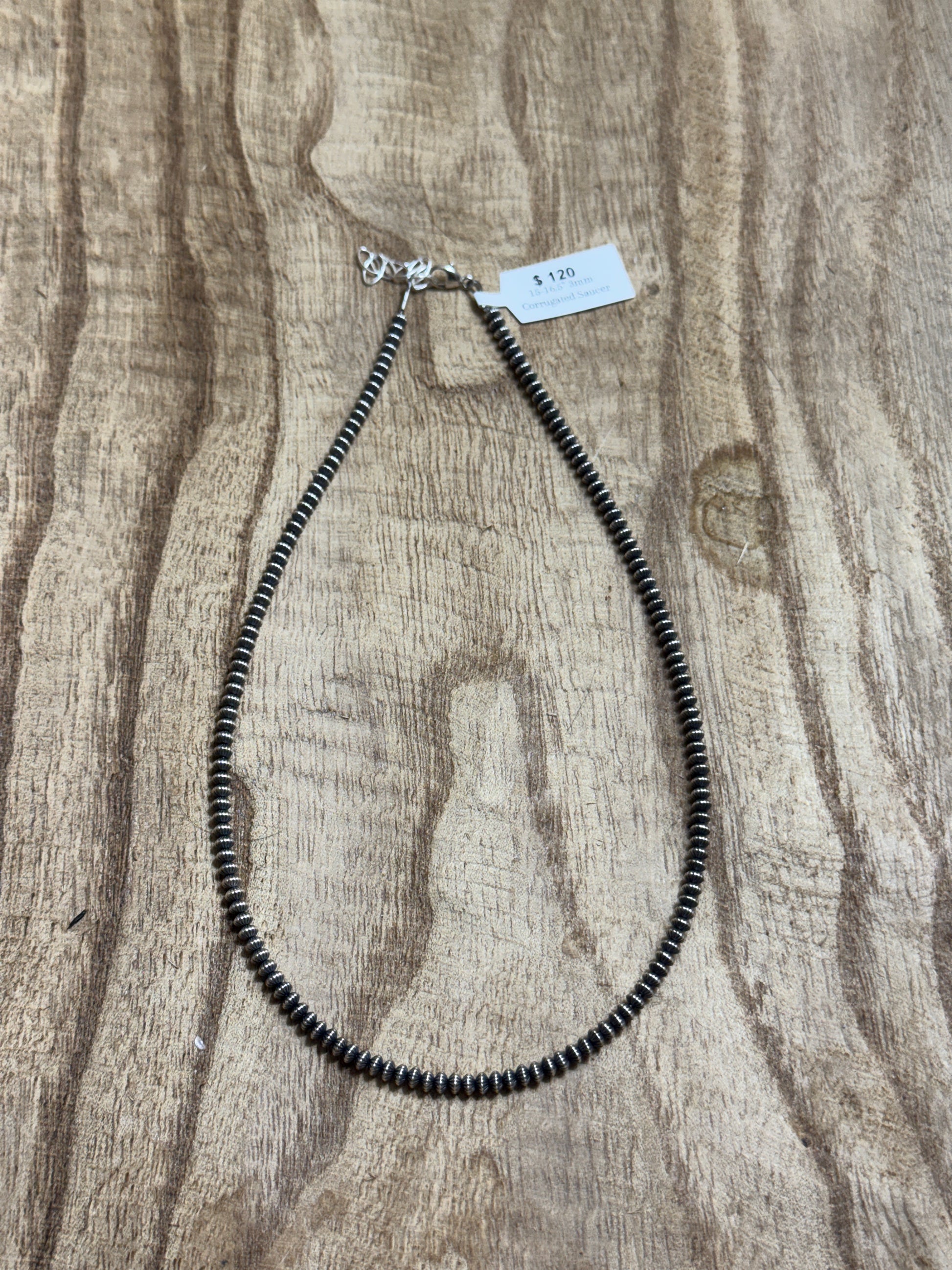 this necklace measures 15-16.5 inches long and features 3mm sterling pearl corrugated saucers