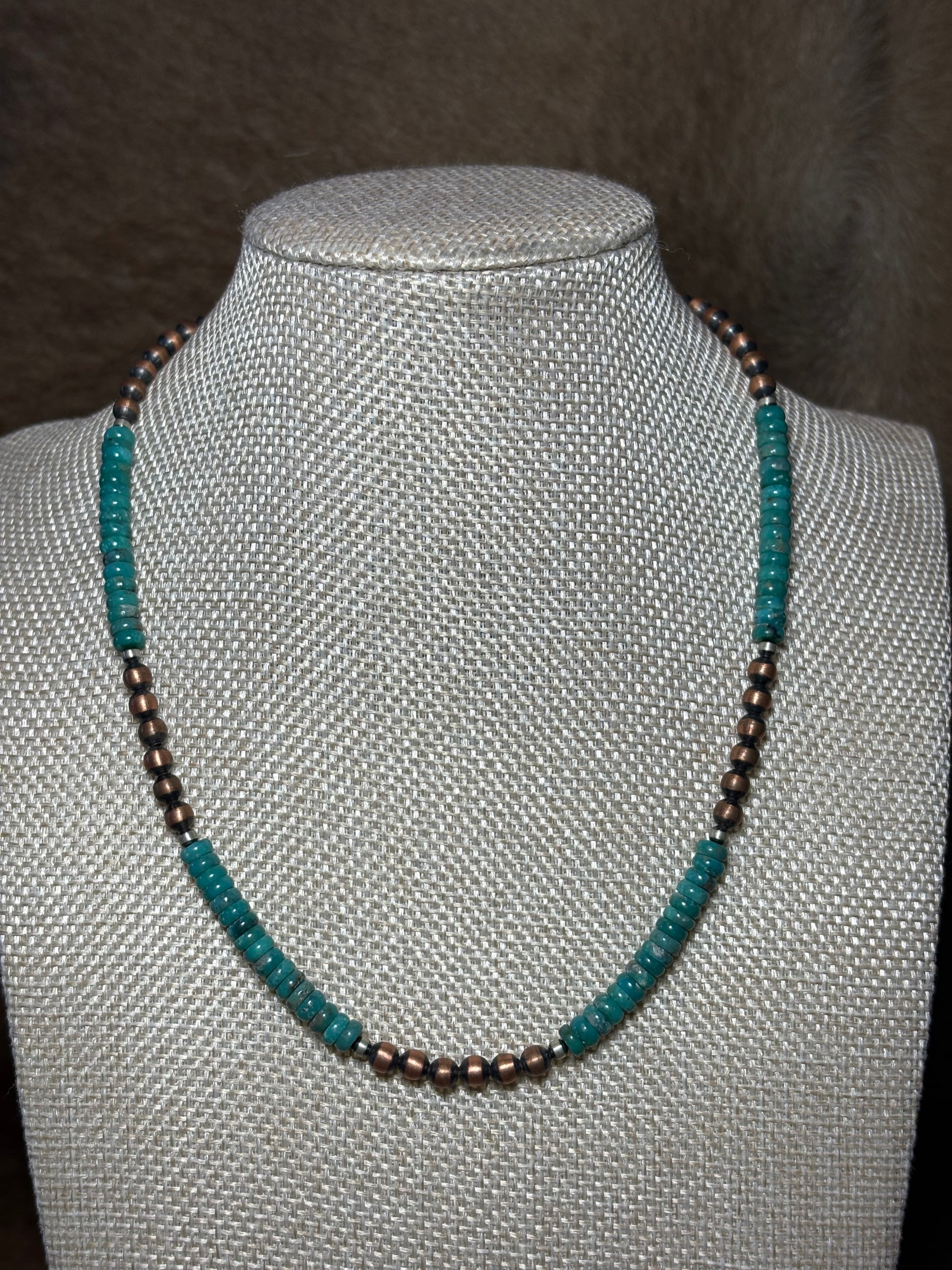 16-18" 4mm Copper Pearl and Turquoise Necklace