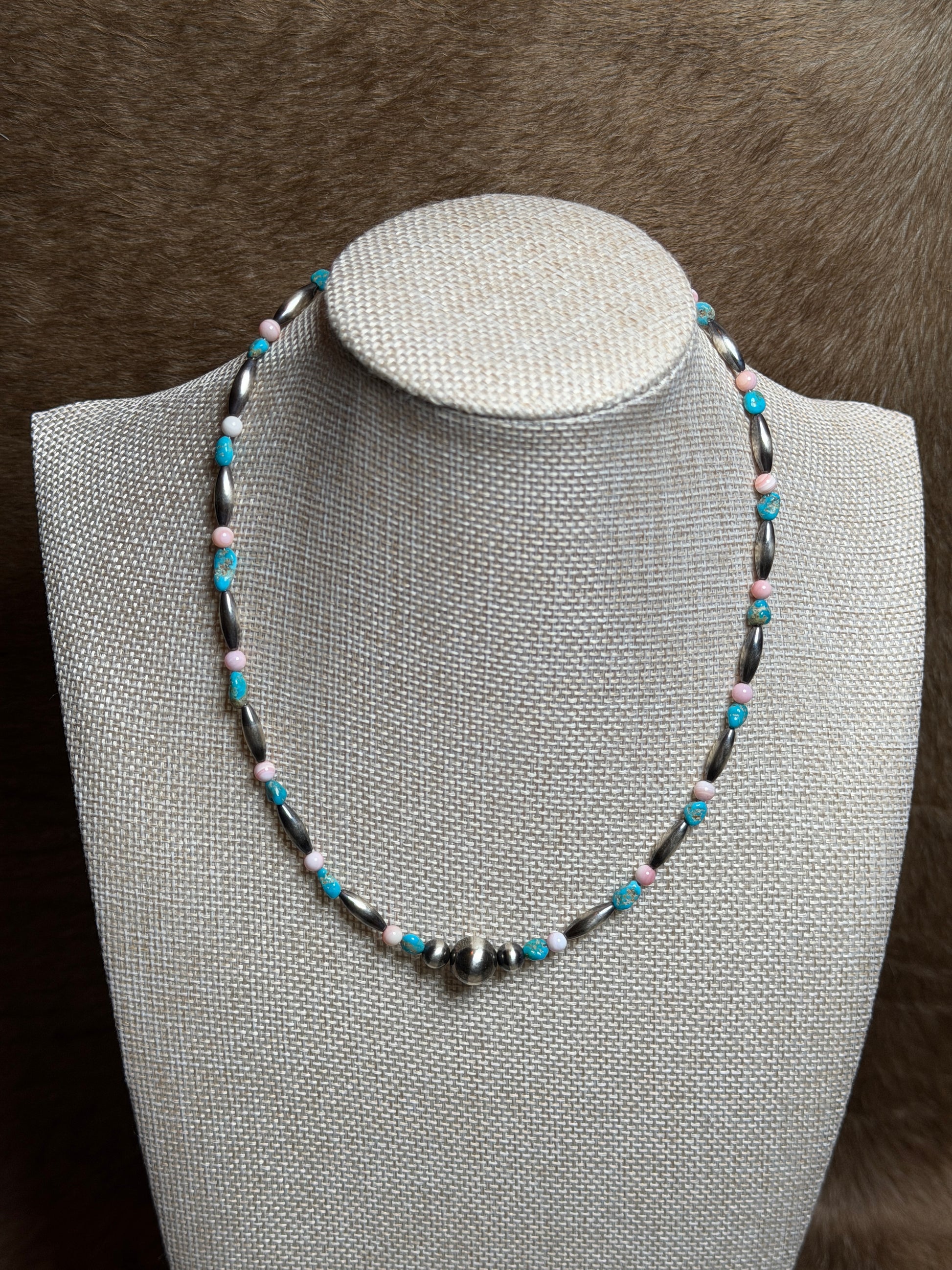 6-10mm sterling pearl, torpedo, pink conch and blue ridge turquoise