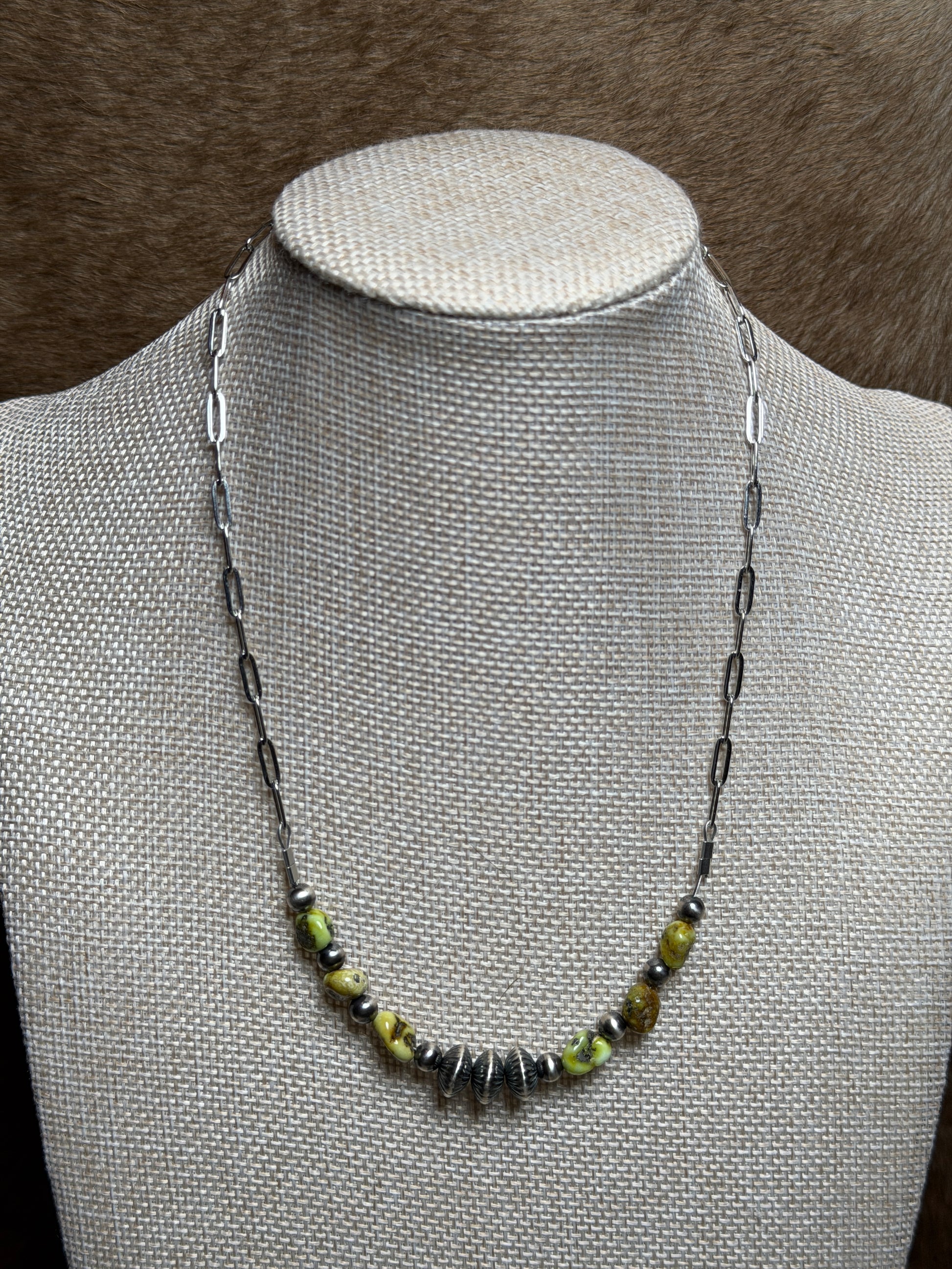 5mm sterling pearl, 9mm corrugated saucer and palomino variscite