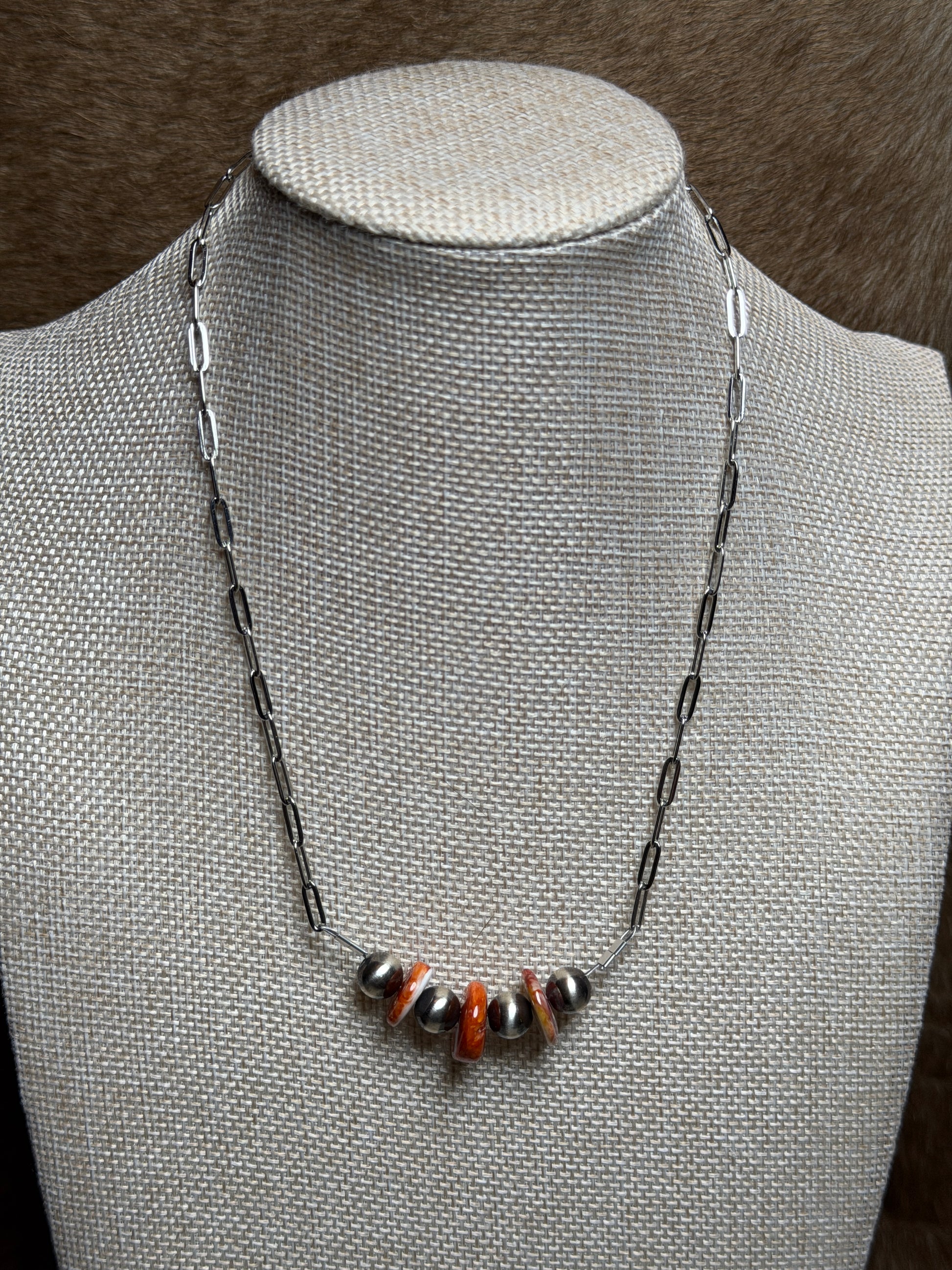 8mm sterling pearl and red spiny