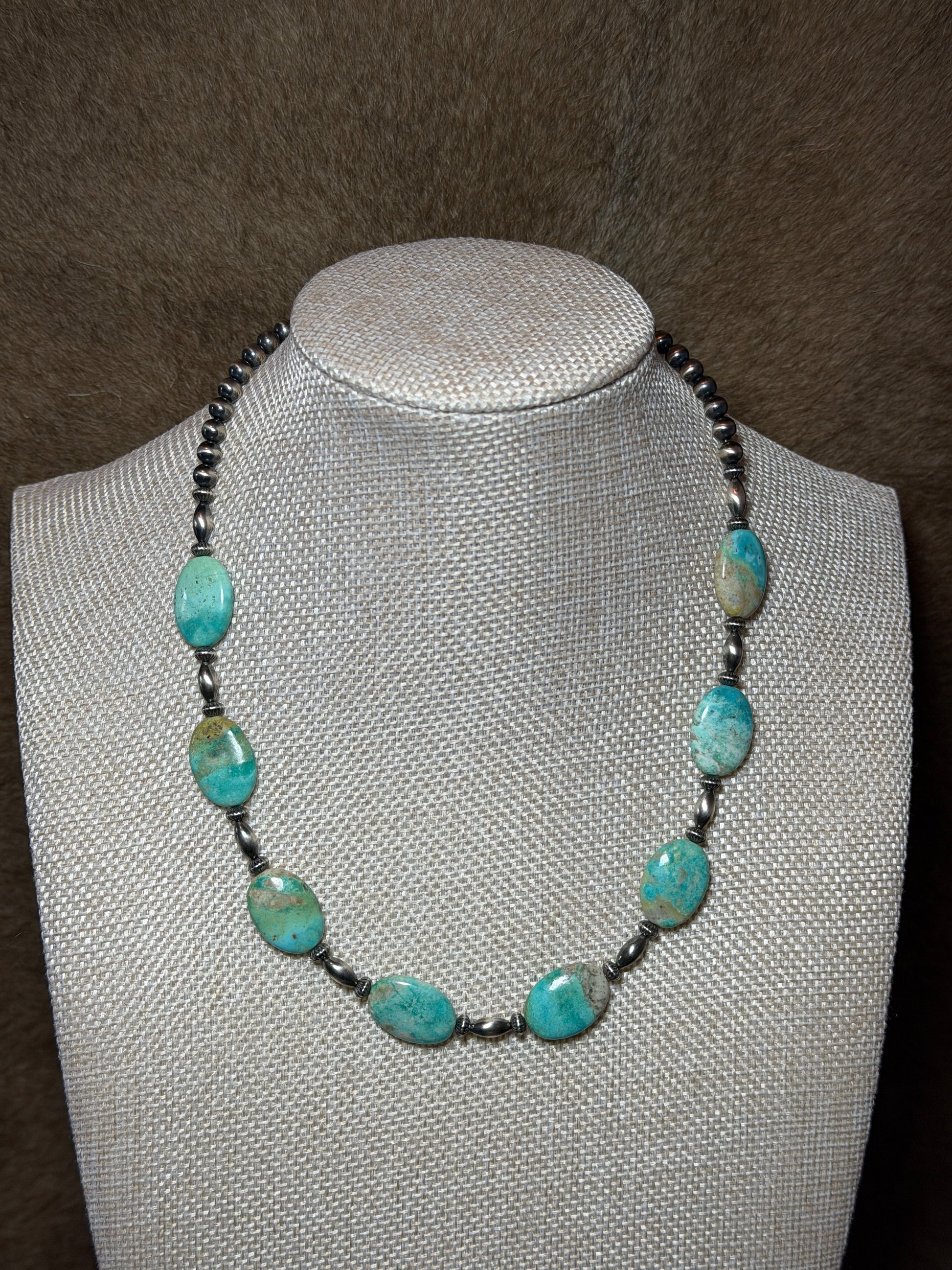 5mm sterling pearl, mini torpedo, 4mm corrugated saucer and genuine turquoise