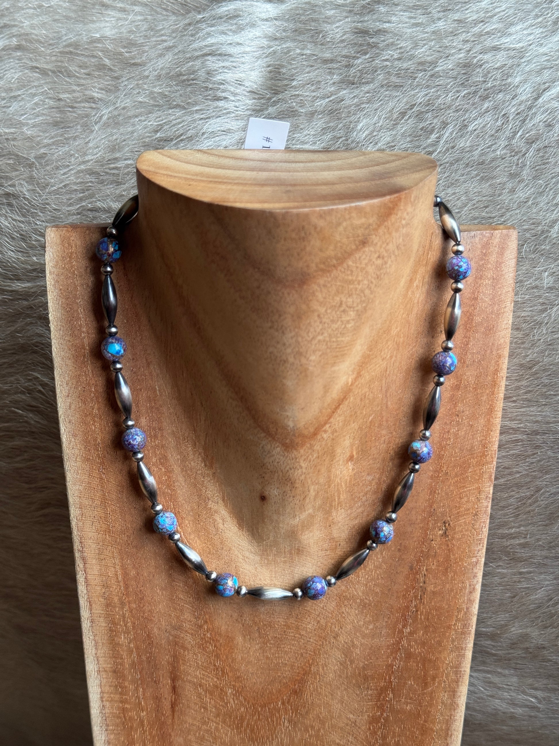 4mm sterling pearl, 5x15mm torpedo & purple spotted mohave