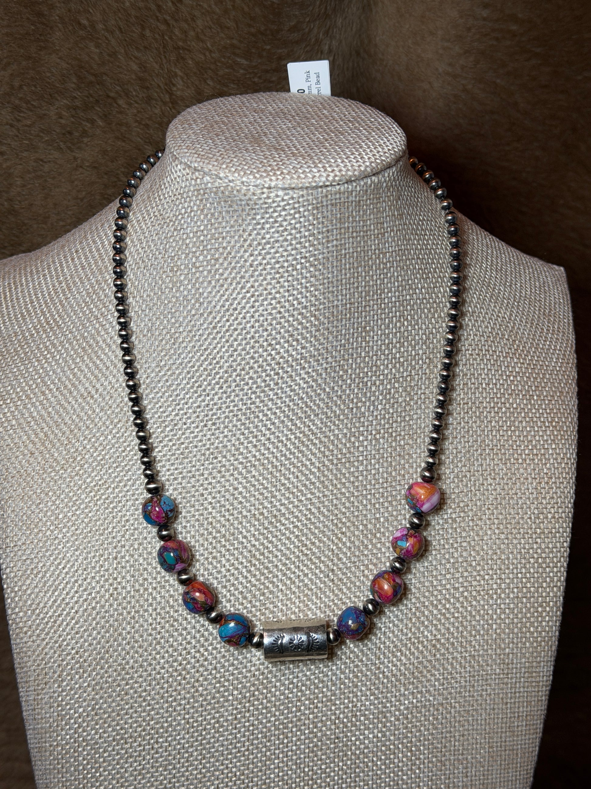 4-5mm sterling pearl, stamped sterling barrel bead, pink dahlia