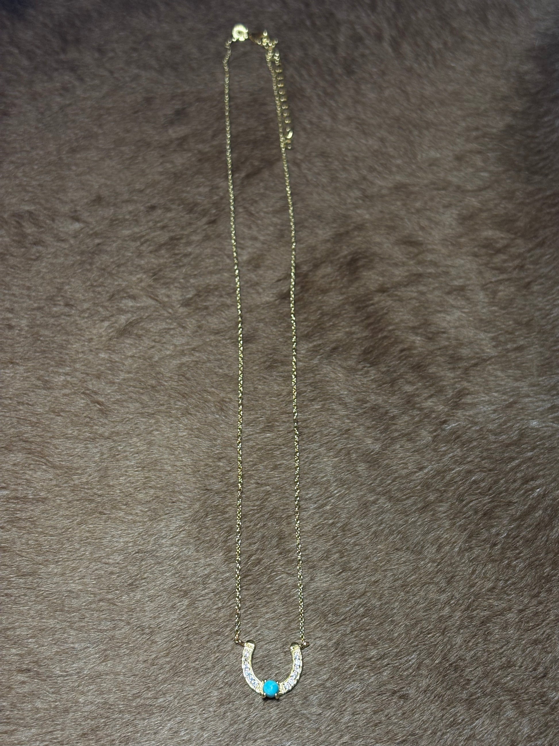 18-20” 14k plated gold, turquoise horseshoe necklace