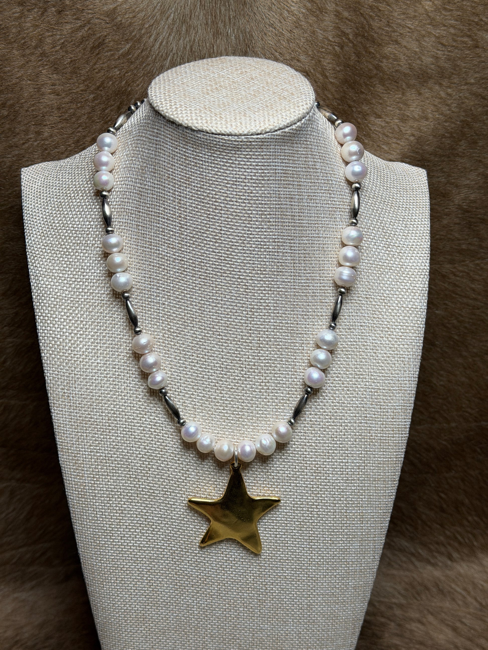 4mm sterling pearl, 4x12mm torpedo, freshwater pearl and gold plated star charm