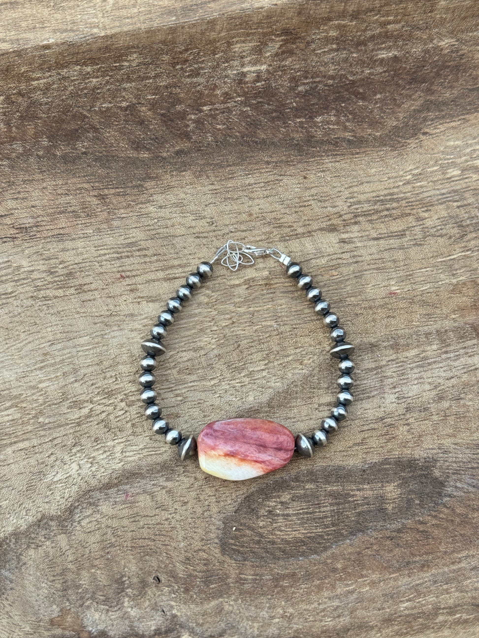 7.5-8.5" 6mm + 8mm sterling saucers with red spiny bracelet