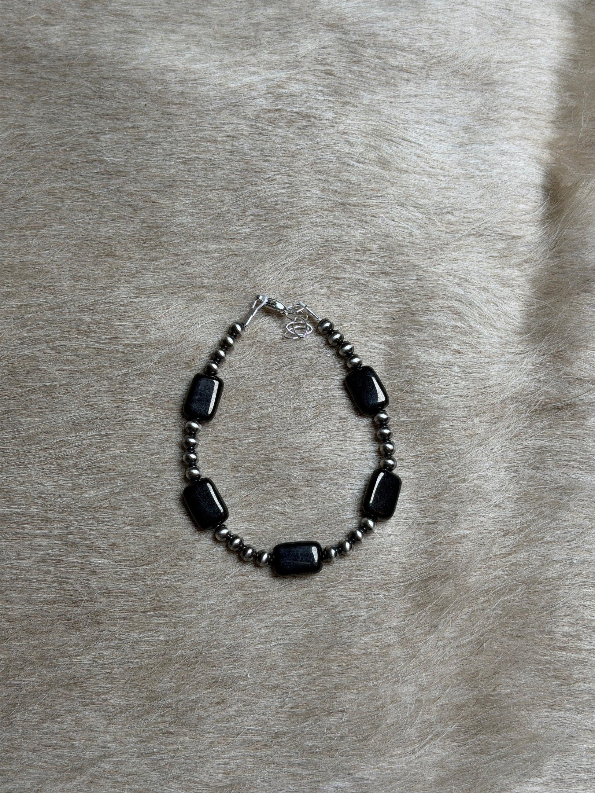 4mm sterling pearl and black onyx square