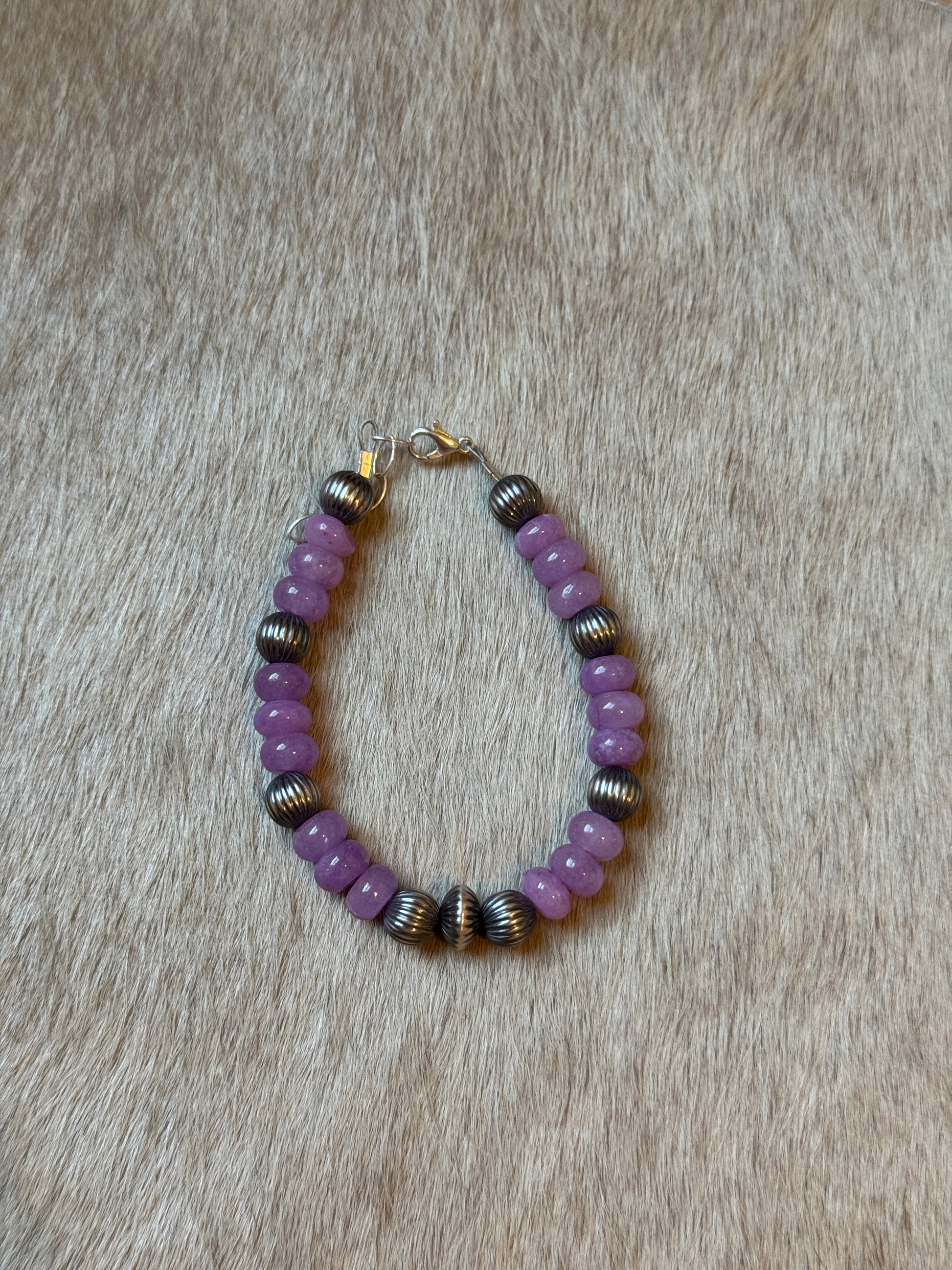 ~ 8mm Sterling Melon Pearl, 9mm Corrugated Saucer & Lavender Jade
