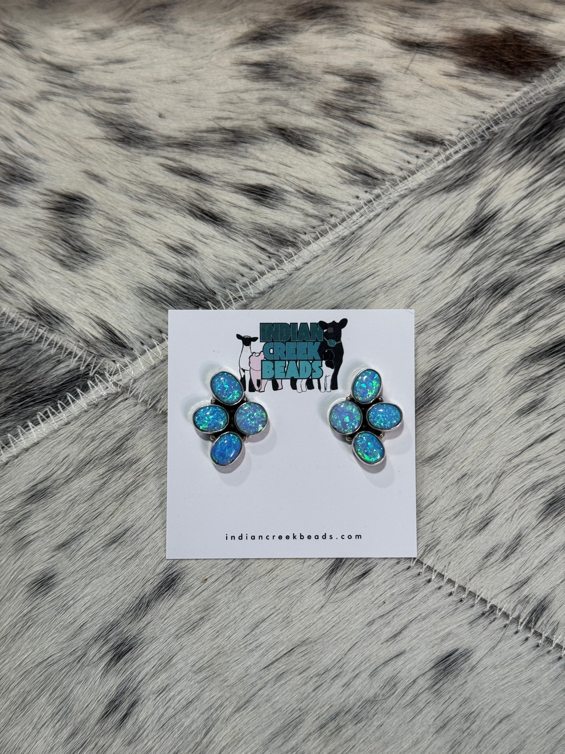 sterling silver blue opal cluster earrings