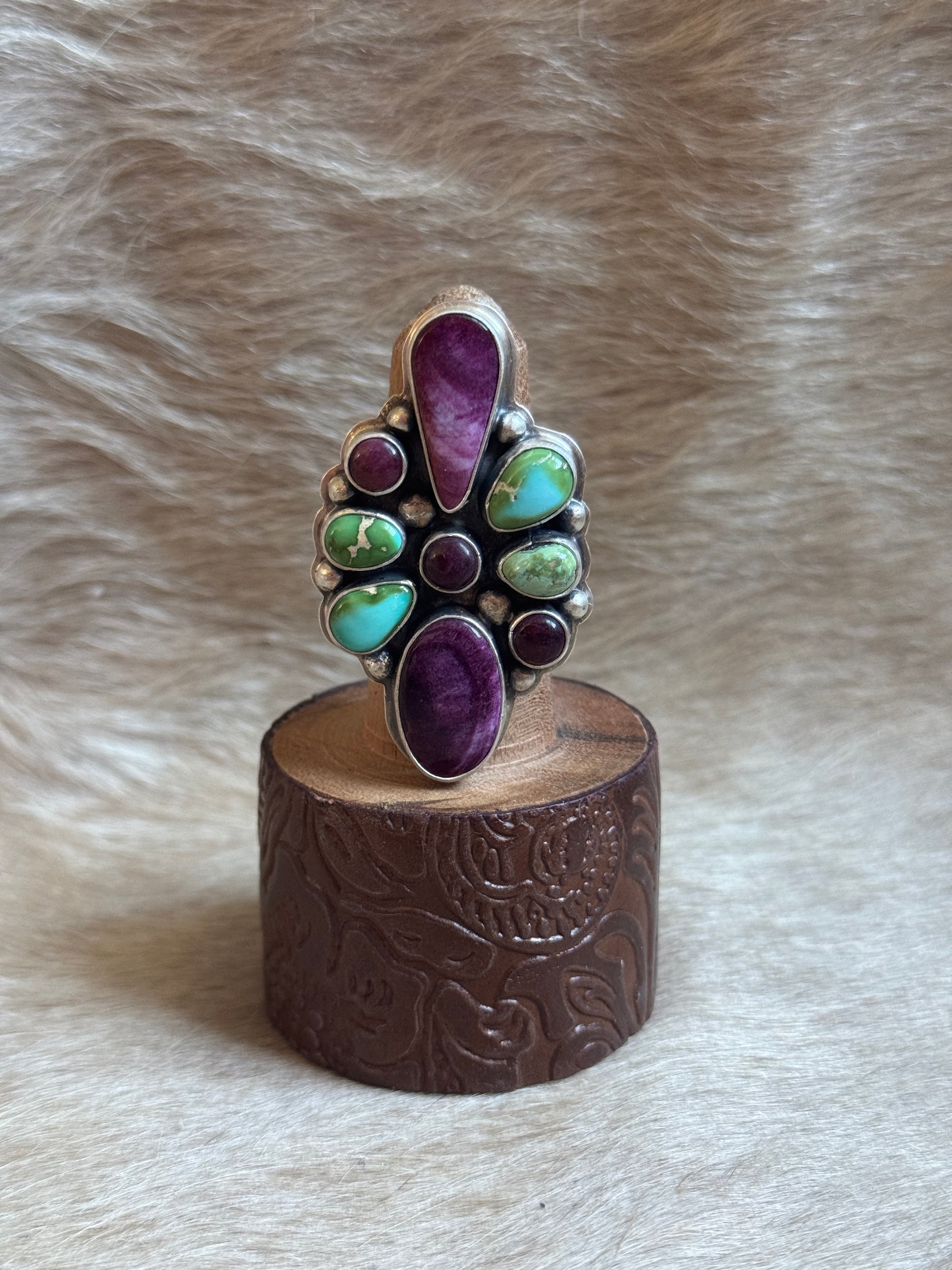 size 9 purple spiny and Sonoran gold sterling silver ring